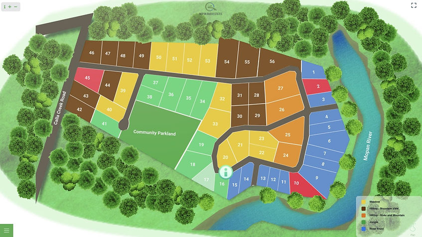 There are a total of 56 lots in the subdivision, carefully designed in rectangular shapes while at the same time considering the topography of the land. Each lot has its own private road access and a high secure building site with no septic issues.